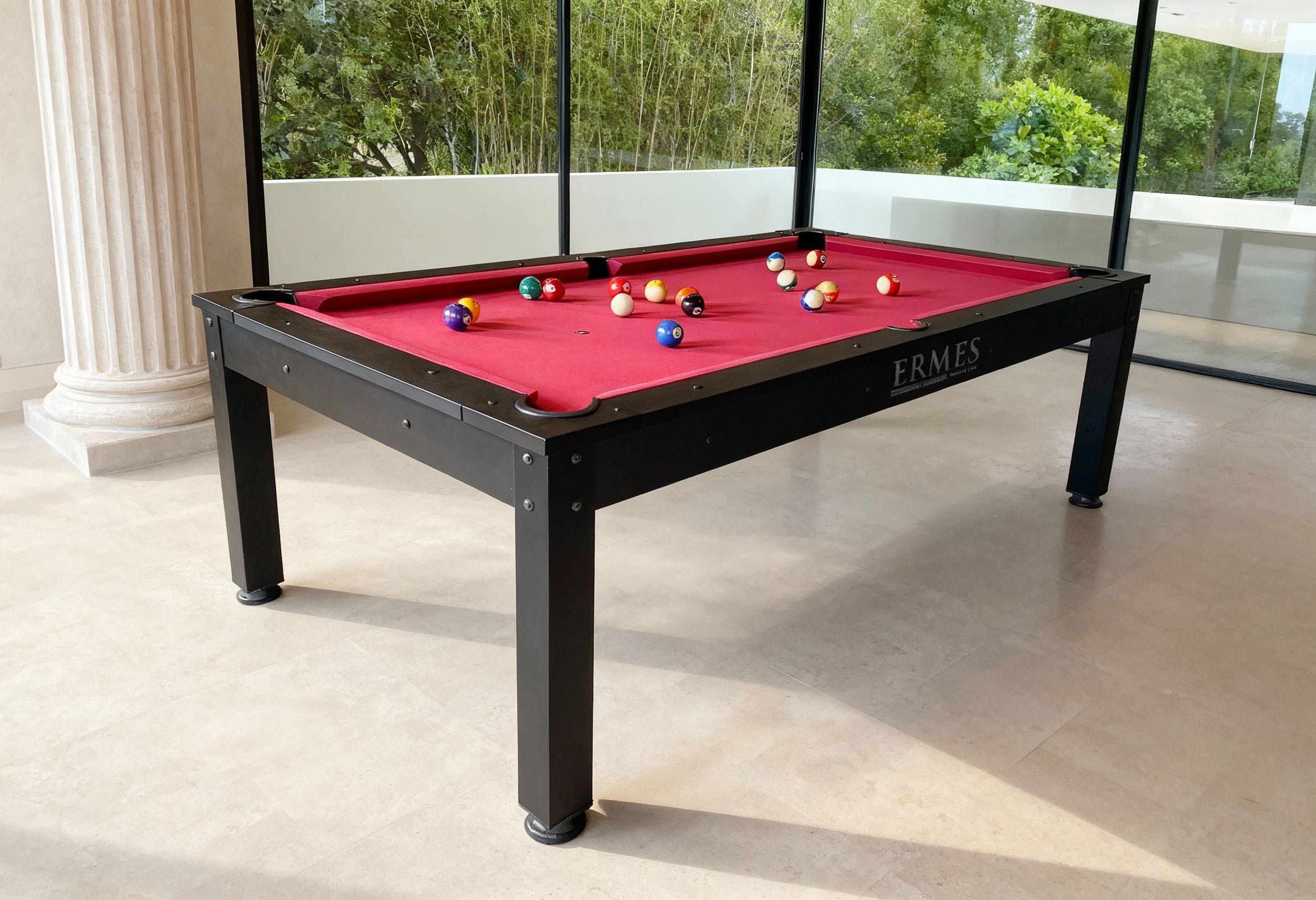 Dolgoletna tradicija kakovostne evropske izdelave zagotavlja robustnost, natančnost in eleganten videz biljard mize Ermes, primerne tako za komercialno kot za domačo uporabo.
