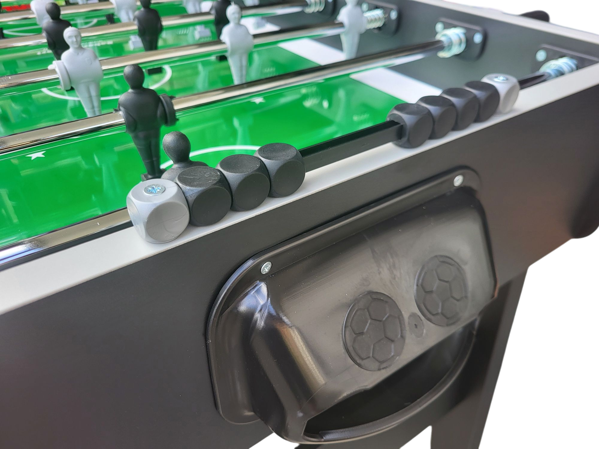 • Števec golov in odprtina za žogice na obeh straneh nogometa.